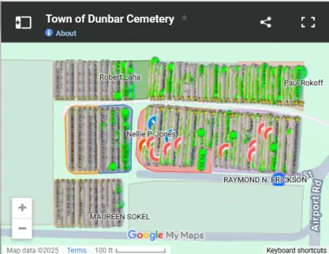 Town of Dunbar Permanent Resident:$150.00 - 4’ x 10’ Lot$150.00 - Per Person Inurnment Opening$400.00 - Per Full Burial Opening$800.00 - Winter Opening - To Be Determined$100.00 - Monument Location Marking $50.00 - Deed Transfer(3) Cremations per 4’ x 10’ Lot(1) Full Burial per LotTown of Dunbar Non-Resident:$700.00 - 4’ x 10’ Lot$150.00 - Per Person Inurnment Opening$400.00 - Per Full Burial Opening$800.00 - Winter Opening - To Be Determined$100.00 - Monument Location Marking $50.00 - Deed Transfer(3) Cremations per 4’ x 10’ Lot(1) Full Burial per Lot